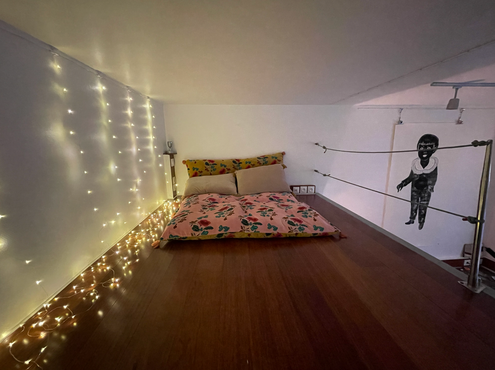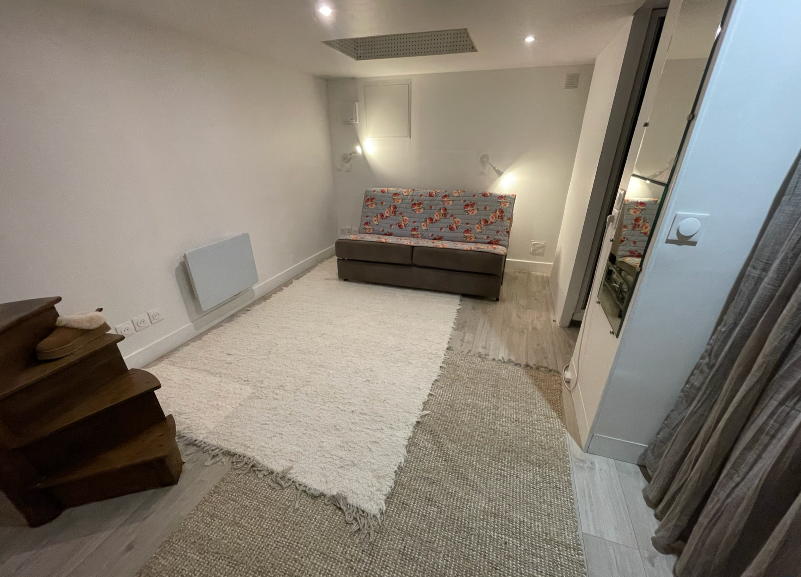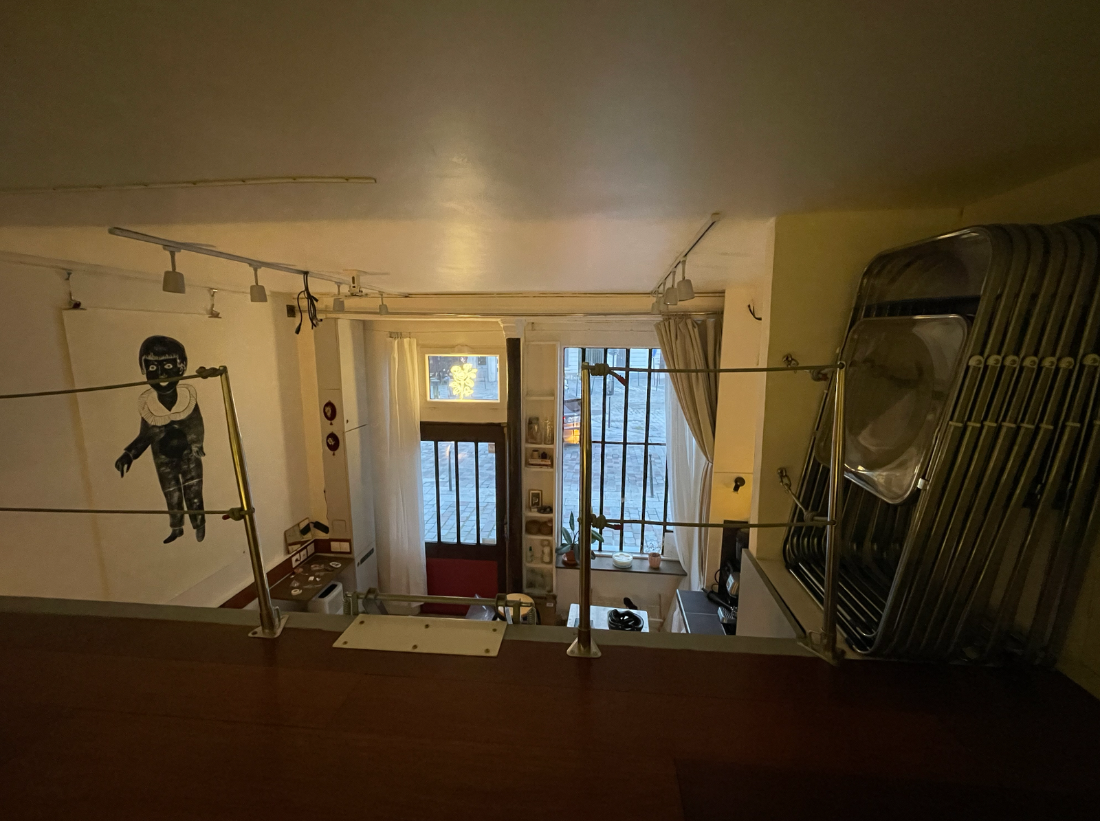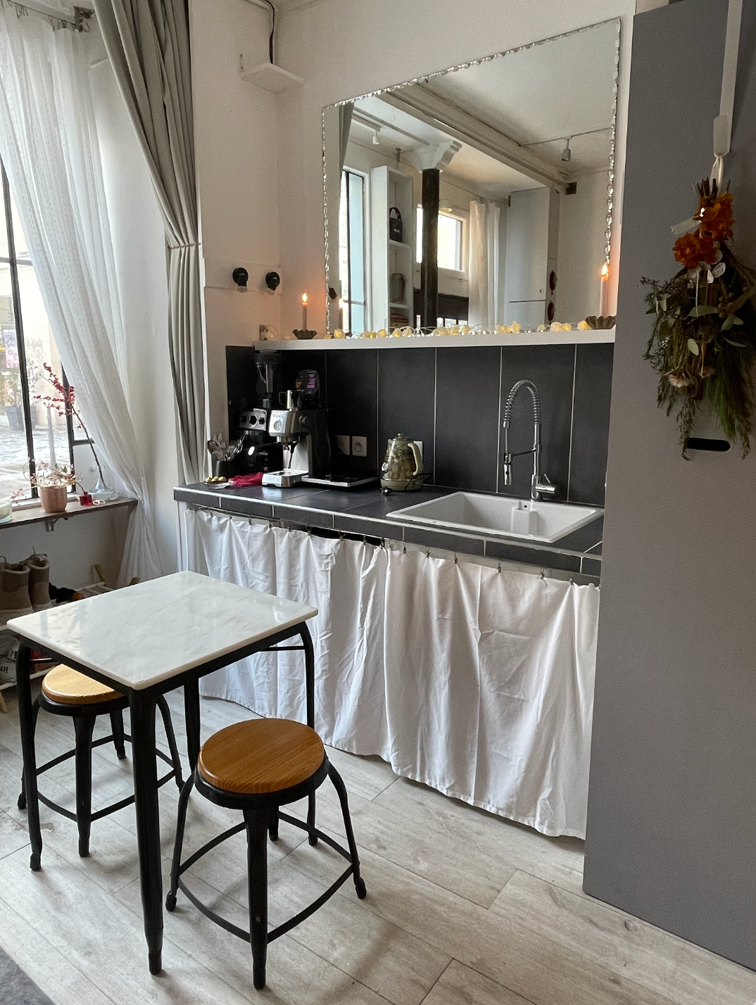 The atelier has its own private street entrance and is composed of a main studio floor, a cozy mezzanine/reading nook, and a souplex bedroom space below with a comfortable queen fold-out bed, closet, shower, sink, and additional work desk. Guests have access to the entire studio while staying, including the kitchenette (microwave, coffee machine, mini-fridge, kettle, and one induction hub for very basic cooking), two distinct workspaces, electric piano, projector for film nights, dimmable lighting, bluetooth speakers, and the creative energy of a lived-in art space. It is not a traditional apartment, but a warm, cozy, thoughtfully outfitted studio, perfect for artists, writers, thinkers, wanderers, and anyone who wants to feel like they truly live in Paris, even if only for a little while.